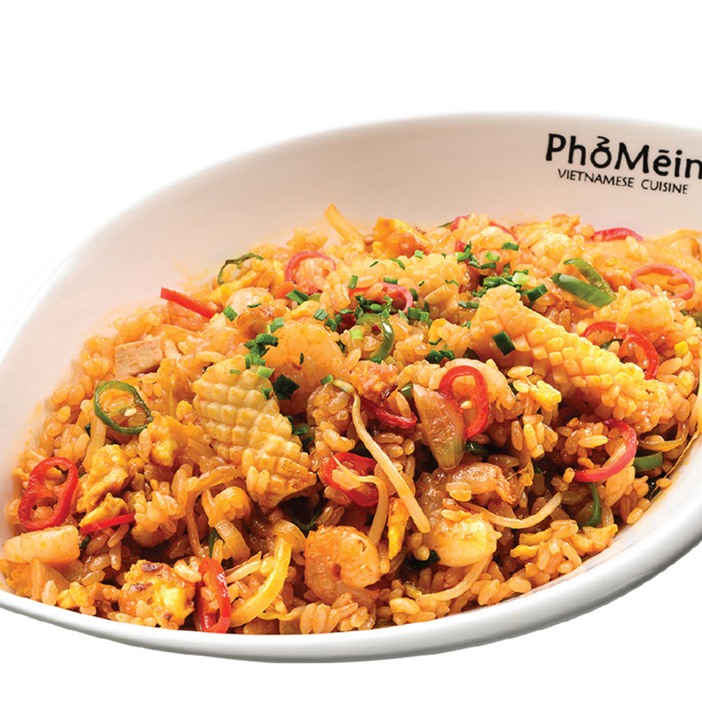 신선한 야채, 새우, 오징어, 계란을 특제 소스로 볶아낸 매콤한 볶음밥