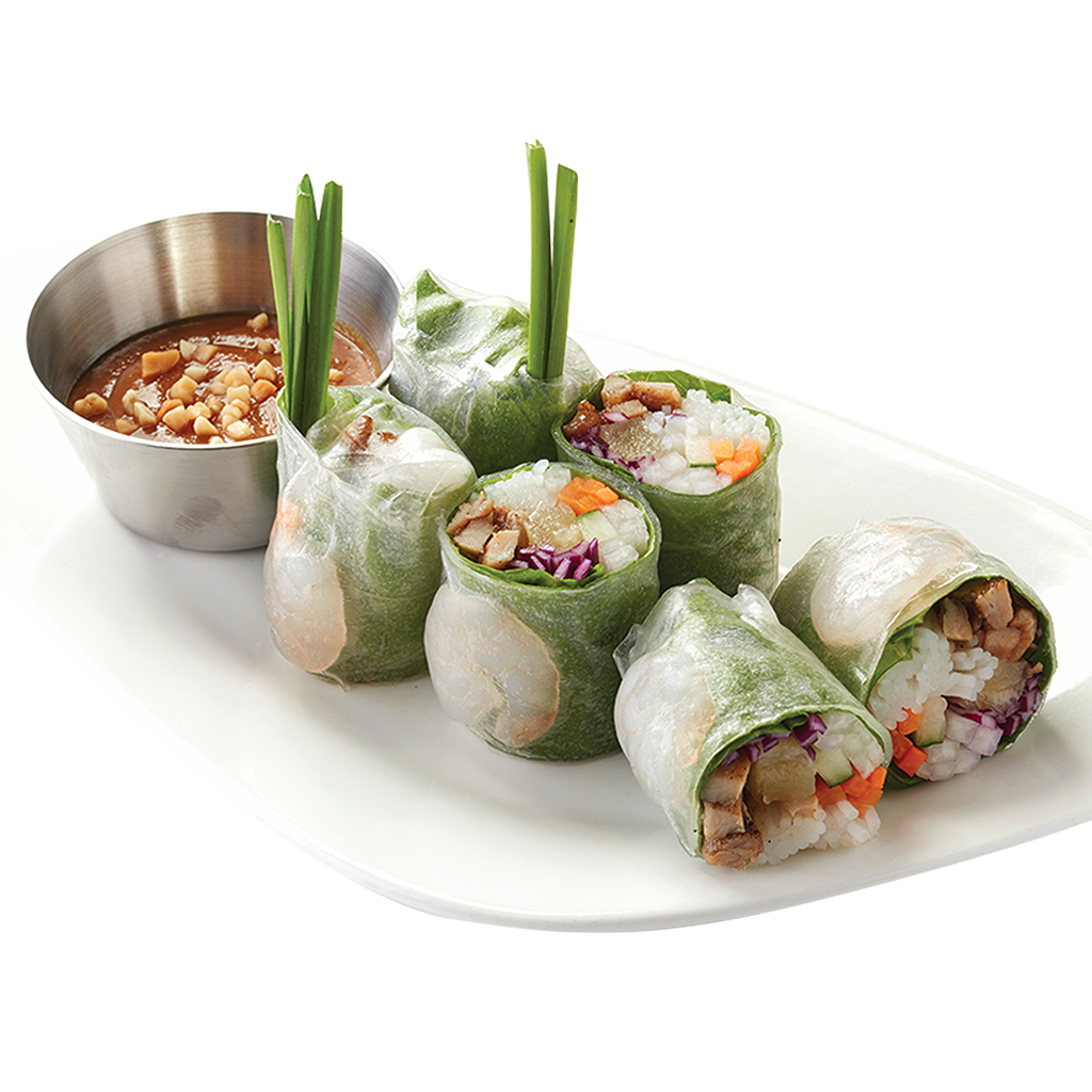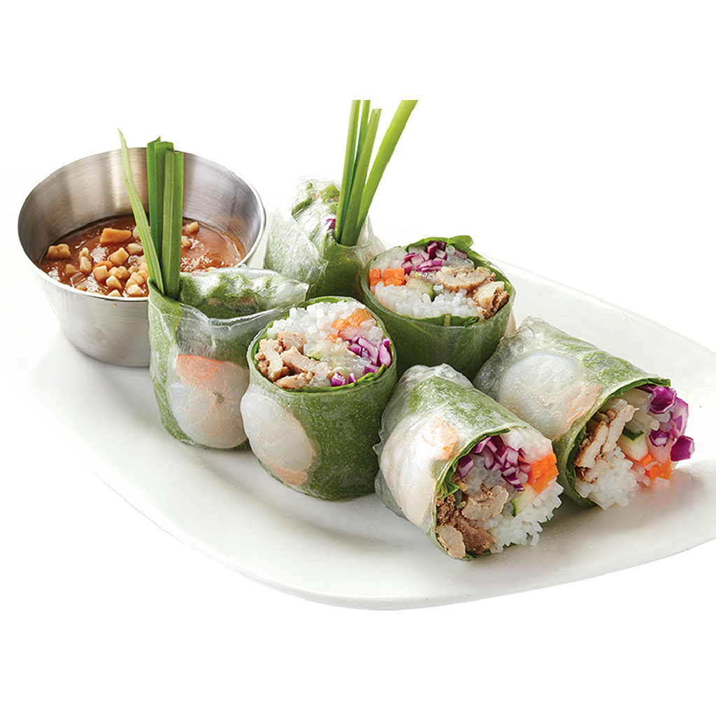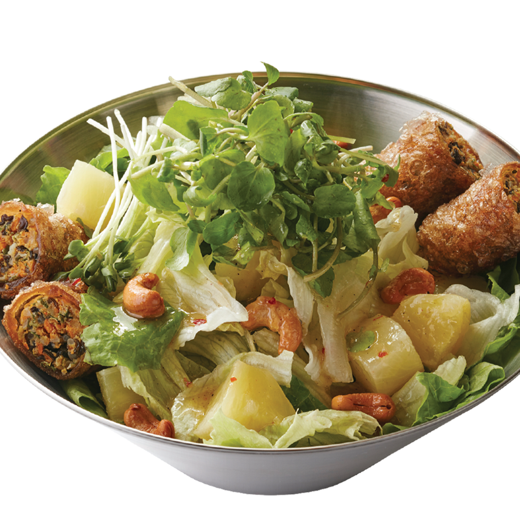 새우, 닭고기, 파인애플, 야채, 버미셀리를 라이스 페이퍼에 말아낸 건강식 쌈