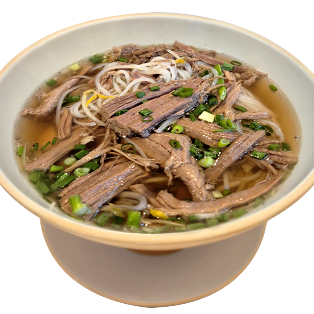 부드러운 양지고기를 큼직하게 찢어 올린 쌀국수